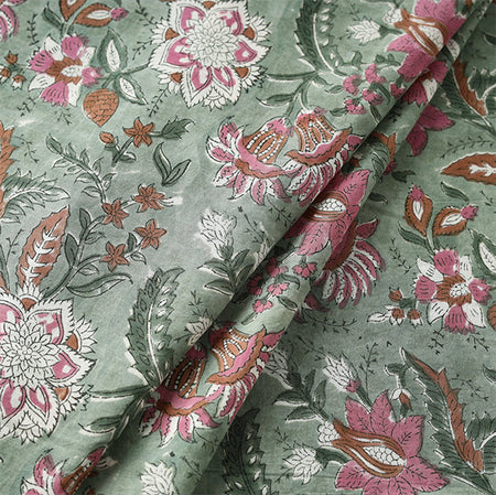 Pieni erä kauniita käsin painettuja kankaita! Ne valmistetaan Intian Rajasthanissa paikallisten käsityöläisten työpajoissa. Kuosit painetaan perinteisellä block print -tekniikalla, jota on vaalittu sukupolvien ajan. Työn tekevät pienissä osuuskunnissa toimivat artesaanit, jotka saavat työstään reilun palkan. Kuosit värjätään vastuullisesti atsovapailla väriaineilla. Kankaat ovat ohutta ja ihanan pehmeää puuvillaa. Kangas soveltuu hyvin vaatetukseen, kuten toppeihin ja paitoihin, mutta myös vanun kanssa pussukoihin ja pienasusteisiin.
