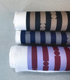 The deliciously colored and art deco-inspired striped pattern is printed on 100% cotton fabric. The fabric is versatile and is well suited for accessories and interior design products, such as bags and kitchen textiles. The half-panama weave gives the fabric a recognizable, sturdy structure and is easy to sew.