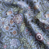 Tämä kaunis kukkakuosi on painettu hulpiota myöten ja on siksi täydellinen pöytäliinaksi, koska ei vaadi välttämättä reunojen kääntämistä. Katso myös toinen väri - vaalea kitti.